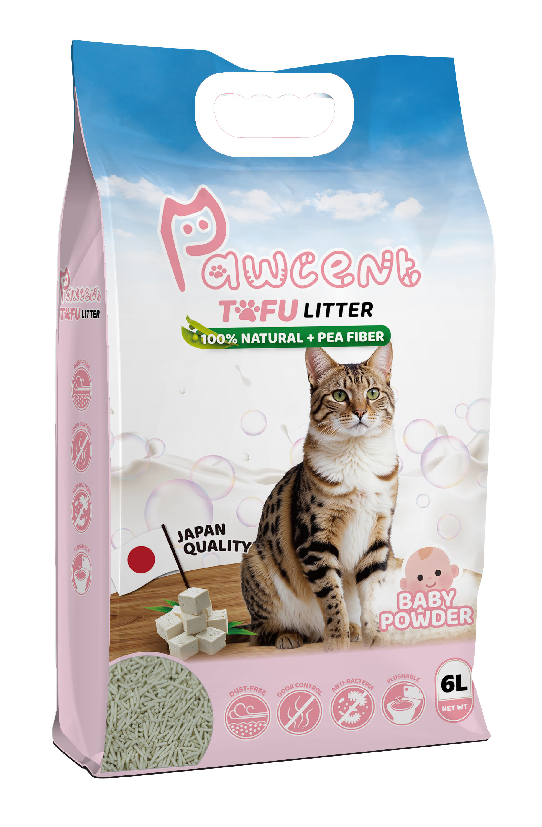 Pawcent Tofu Cat Litter combines advanced Japanese technology with natural tofu fiber to create the ultimate litter experience for your cat. This dust-free formula protects your cat's respiratory health while the soft texture is gentle on sensitive paws. Superior hard clumping action makes cleanup effortless, and the flushable design offers convenient disposal. Give your feline friend premium comfort and care with every use.